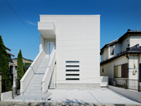 - 榛名山の裾野に立地していて、南側に高崎市街を眺めることができます。建物周りには桑畑と梅林が広がるといった田園地帯で、高校で美術を教える建築主のアトリエ兼住宅です。